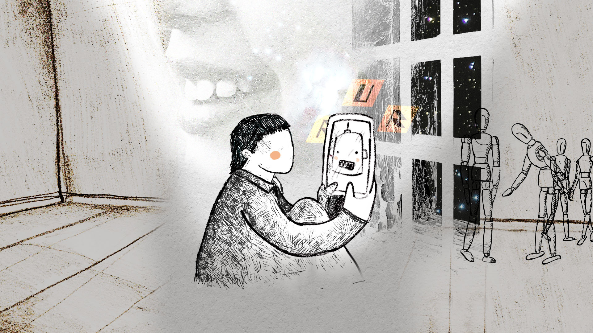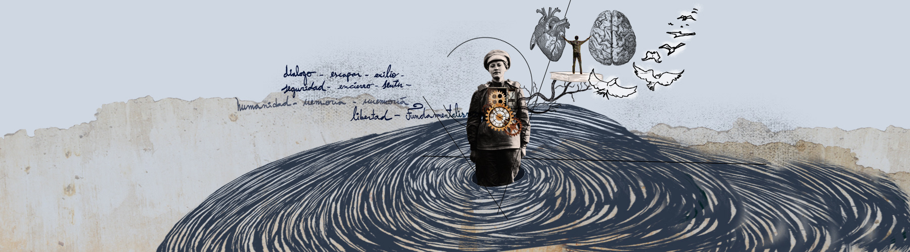 Serie de collages empleados como portadas de artículos de lectura digital para la Revista Scholé del Instituto Superior de Estudios Pedagógicos de Córdoba.