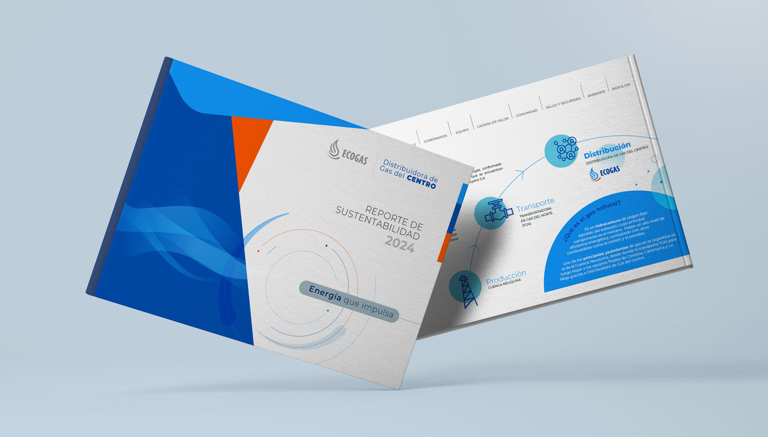 Creatividad y diseño gráfico de reporte de sustentabilidad para la Distribuidora de Gas ECOGAS. Desarrollo de una versión digital interactiva para las dos regiones, Centro y Cuyo, más un Consolidado que resume datos de relevancia.